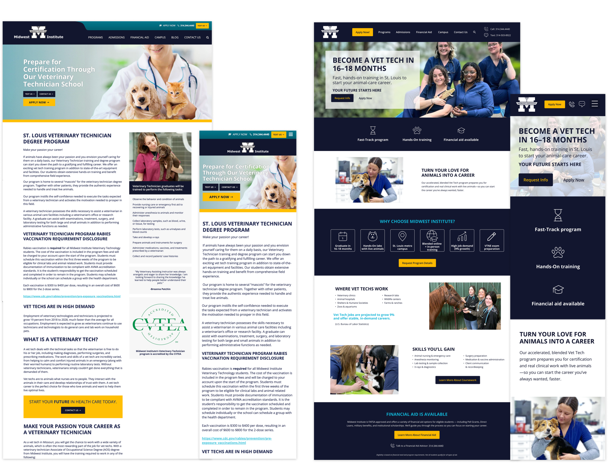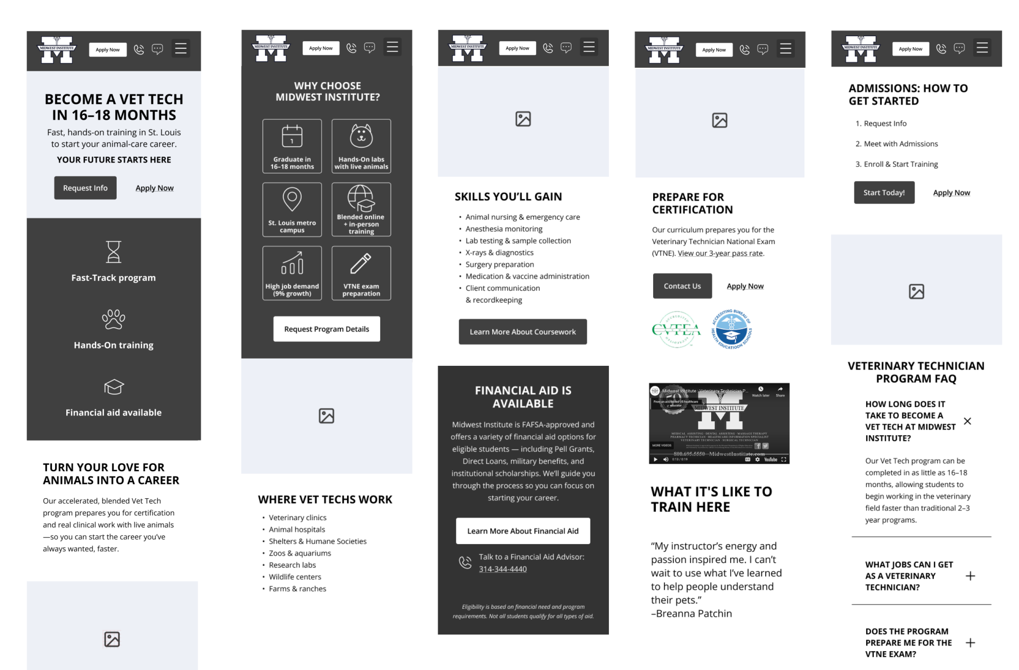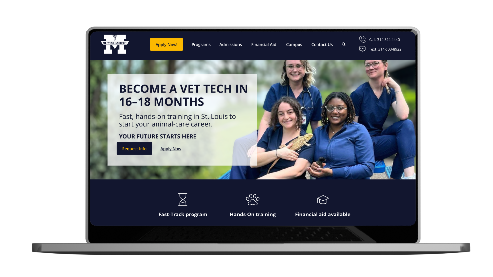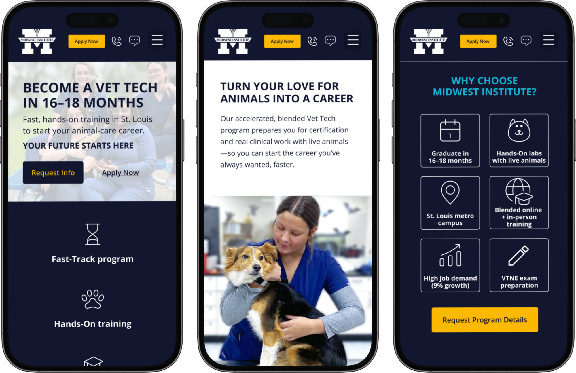 Content was restructured to better highlight the program's key differentiators — including hands-on training and a faster path to career readiness. Replaced stock imagery with authentic images from the Midwest Institute experience.